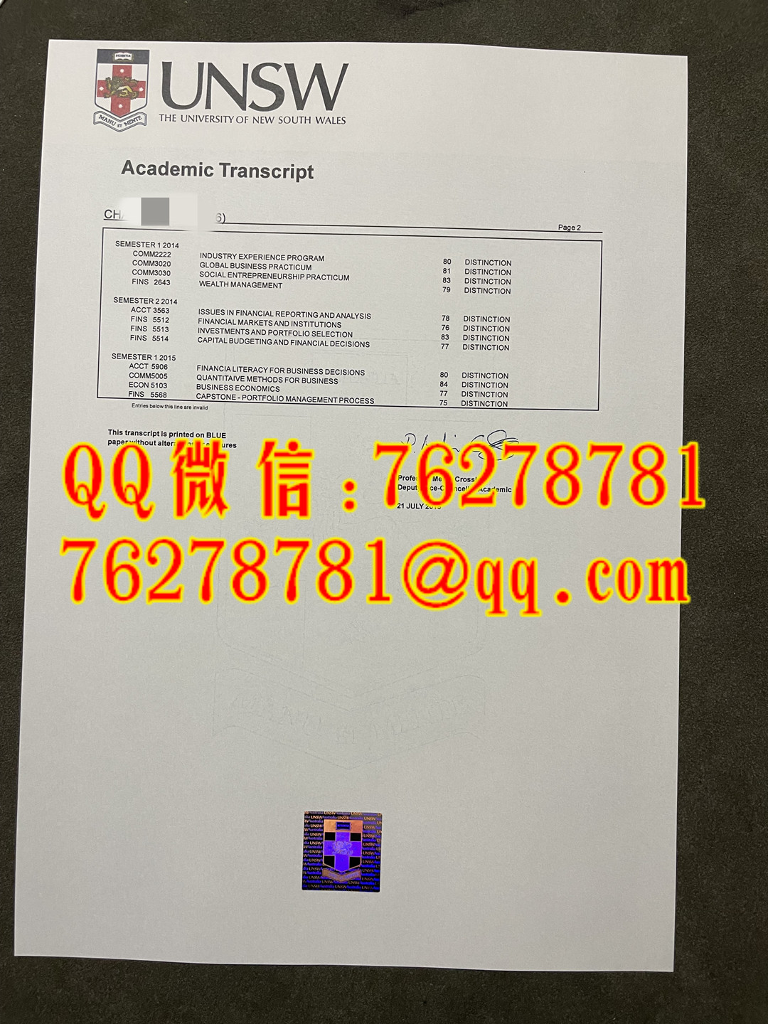 新南威尔士大学商学学士成绩单,University of New South Wales Bachelor of Commerce transcript